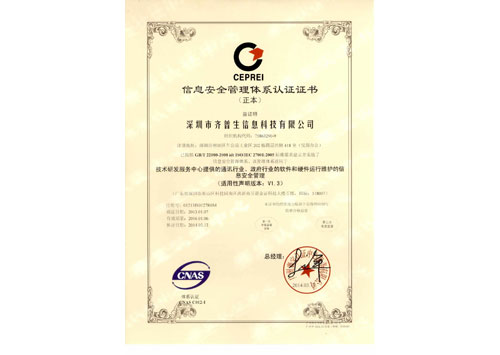 信息安全管理體系認(rèn)證證書(正本)